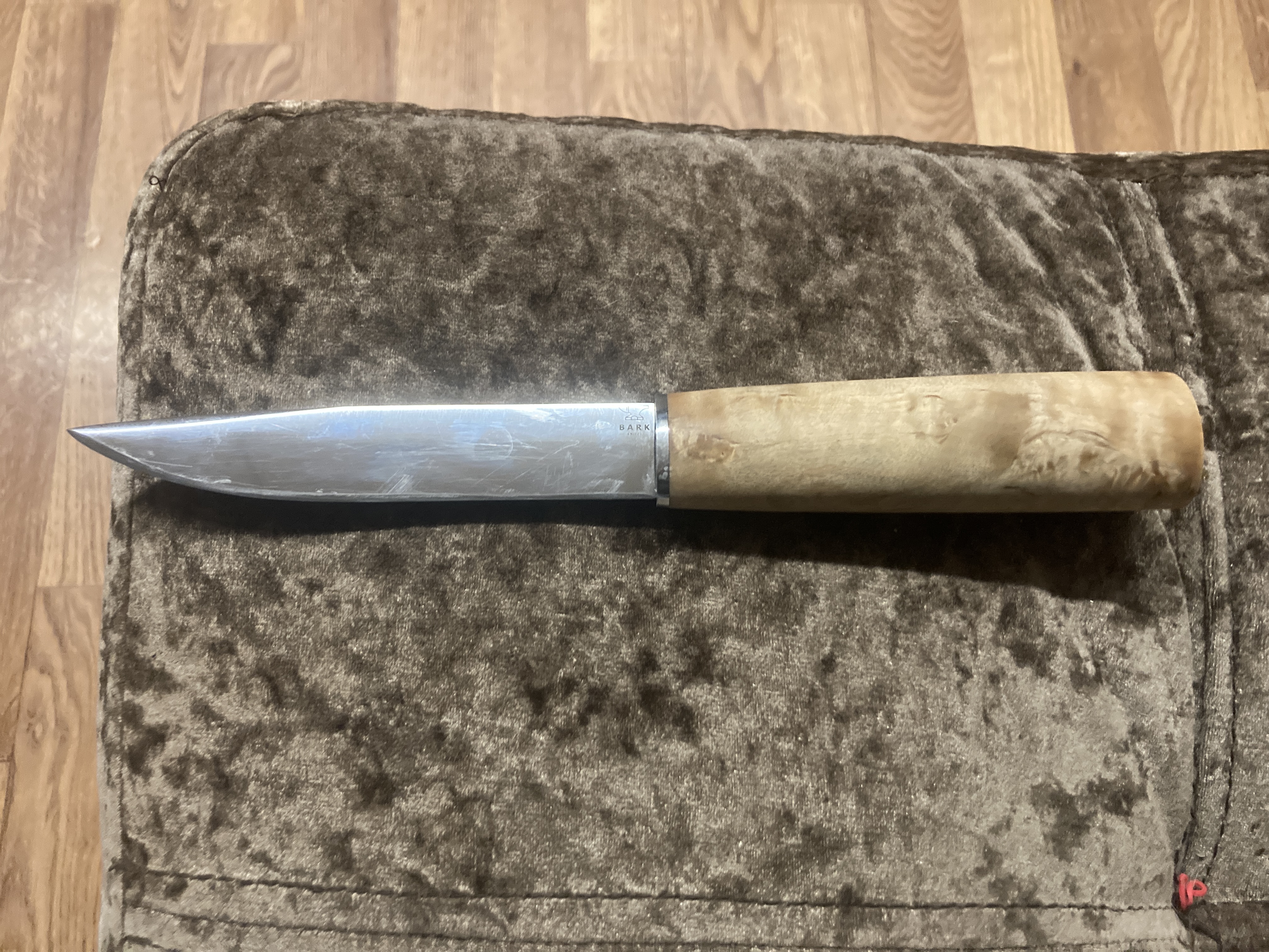 Нож Якут Береза имеет лезвие из высококачественной стали X50CRMOV15 , которая обеспечивает прочность и отличную режущую способность. Лезвие длиной 148 мм имеет оригинальную форму, характерную для якутских ножей, что делает его узнаваемым и особенным. Рукоять длиной 130 мм выполнена из натуральной березовой древесины, которая придает ему элегантный и приятный на ощупь вид. Березовая рукоять также обеспечивает надежный захват и комфортное использование ножа.